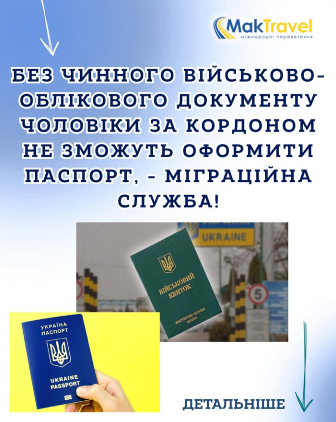 Це стосується громадян України чоловічої статі віком від 18 до 60 років, які планують оформити паспорт громадянина України або паспорт громадянина України для виїзду за кордон.