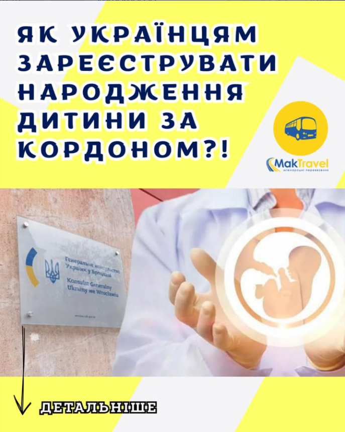 За кордоном державну реєстрацію народження дитини проводять дипломатичні представництва та консульські установи України.